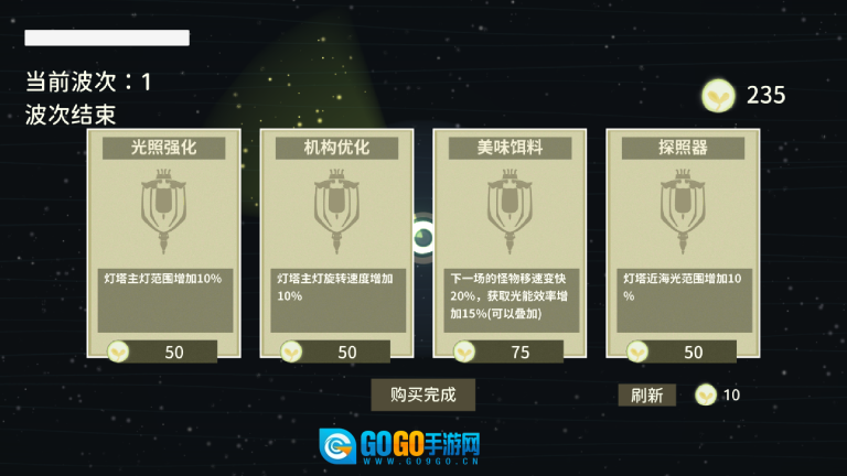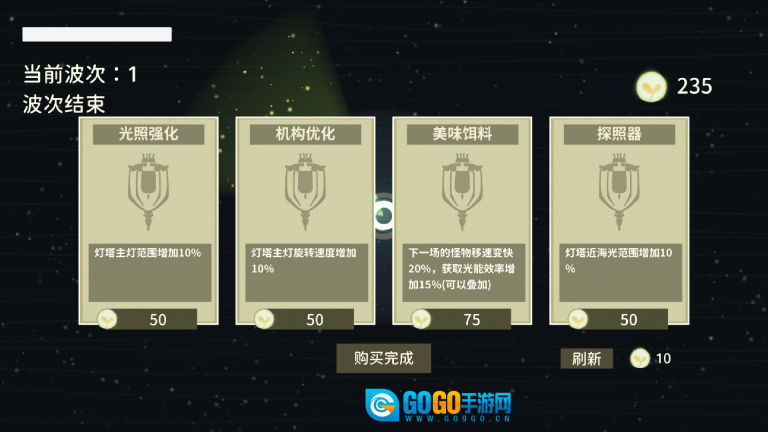 每一轮结束后,都可以用击杀怪物获取的光能来升级灯塔和它的特殊能力,这样后续波次的防御就能更轻松应对了。