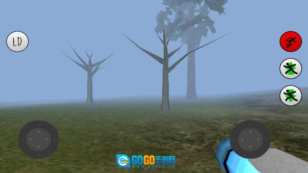 3、进入如图所示的界面后,采用横版操作方式,左侧轮盘负责控制移动,右侧轮盘则用于调整视角。