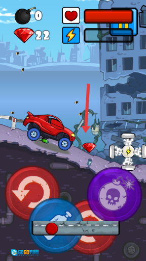 2、驾驶过程中,要及时拾取路面标注的红色钻石,这些钻石可用于后续解锁新车辆,也能在开局时购买道具。