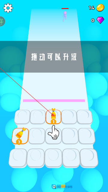 3、通过滑动屏幕将相同的炮台合并,就能组合成新的炮台并实现升级。