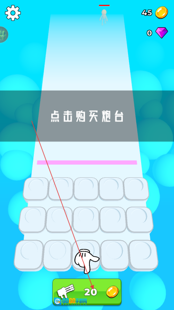 2、点击【20】花费金币购买炮台,攻击敌人。