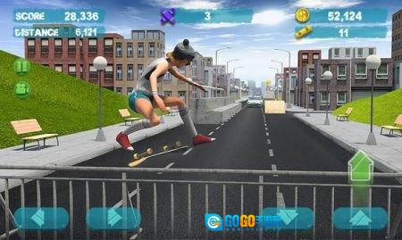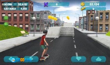 2.玩家需要操控角色完成滑板冲刺,在此过程中避开障碍物与陷阱,以获取更高分数。